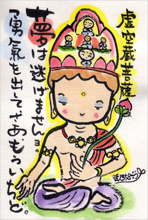 作者ならではの感覚で描いた地蔵絵に癒しの言葉を添