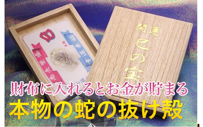 蛇は財運をもたらす神と言われお金とは縁が深いとされています。又、年に数回脱皮することから蛇の抜け殻をお財布に入れると出世し、お金が貯まると言われます。